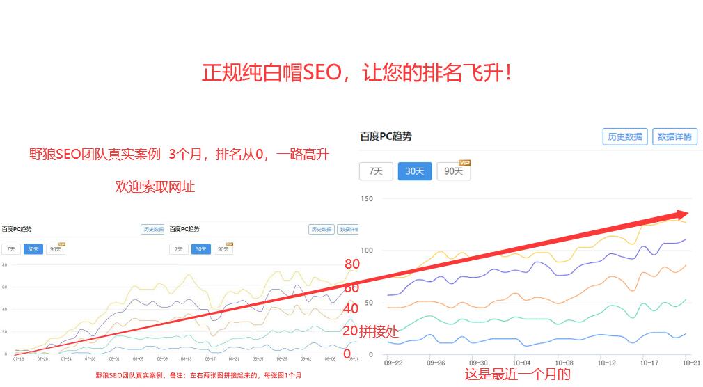 這是客戶找我們做的第二個網(wǎng)站。第一個網(wǎng)站的權(quán)重做到了4,第二個網(wǎng)站做了三個月,排名飛升!這個效果是相當(dāng)不錯的。,而且后邊的沖勁兒也很猛。野狼SEO團(tuán)隊,真心付出,用心做排名!