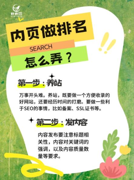 如果想要給網(wǎng)站內(nèi)頁做排名,就需要有兩個(gè)關(guān)鍵步驟:1、養(yǎng)站 2、發(fā)布內(nèi)容。這兩樣缺一不可。