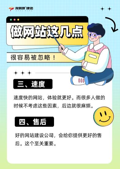 速度和售后,對于網站也很重要。如果網站速度慢,要這個網站有何用?還有的時候售后人員不給力,網站用起來也很不舒服。所以很多方面都要考慮到才行。