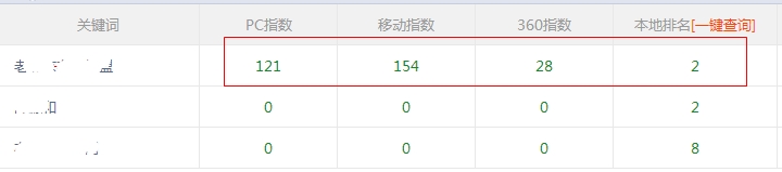 其中指數(shù)電腦121,移動154,這樣屬于熱門關(guān)鍵詞,客戶網(wǎng)站是第二名