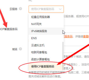 如果是當前賬號并沒有服務(wù)器,就可以選擇最后一個選項:ICP備案服務(wù)碼。如下圖所示