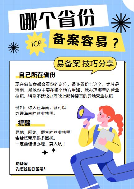 哪個省份的營業(yè)執(zhí)照做ICP備案會更容易一些呢?很多朋友會問我們這樣的問題。因為確實有一些省份備案嚴格,審核條件多。但大部分省份其實是差不多的。