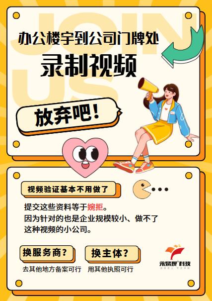 阿里云ICP備案有兩種視頻,一種是錄制承諾書,按照要求做就行了。還有一種是要求錄制從辦公樓宇到公司門牌處的視頻,原文如下“按照監(jiān)管要求,請貴單位法人從辦公樓宇到公司門牌處的錄制視頻(到公司門牌處還需手持營業(yè)執(zhí)照),視頻要求需要一鏡到底便于判斷公司地址真實性(辦公場所錄制視頻),并將視頻上傳至補充材料位置。注意:視頻錄制時需要錄制清楚單位名稱,實際辦公場景等,且視頻錄制時不能有間斷。感謝您的理解與支持!(注:必須有實際正式公司門牌,不能是打印貼牌等,無實際辦公地址不符合備案條件)?!薄_@種情況很難辦!