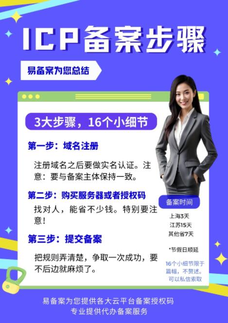 現(xiàn)在ICP備案適用場合很多,比如說開設(shè)網(wǎng)站,還有一些是第三方的號用于審核。大家積極配合就完了。需要就可以找我們。永易搜旗下易備案,專業(yè)做備案!