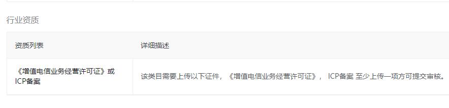 《增值電信業(yè)務(wù)經(jīng)營(yíng)許可證》或 ICP備案 該類目需要上傳以下證件,《增值電信業(yè)務(wù)經(jīng)營(yíng)許可證》, ICP備案 至少上傳一項(xiàng)方可提交審核。