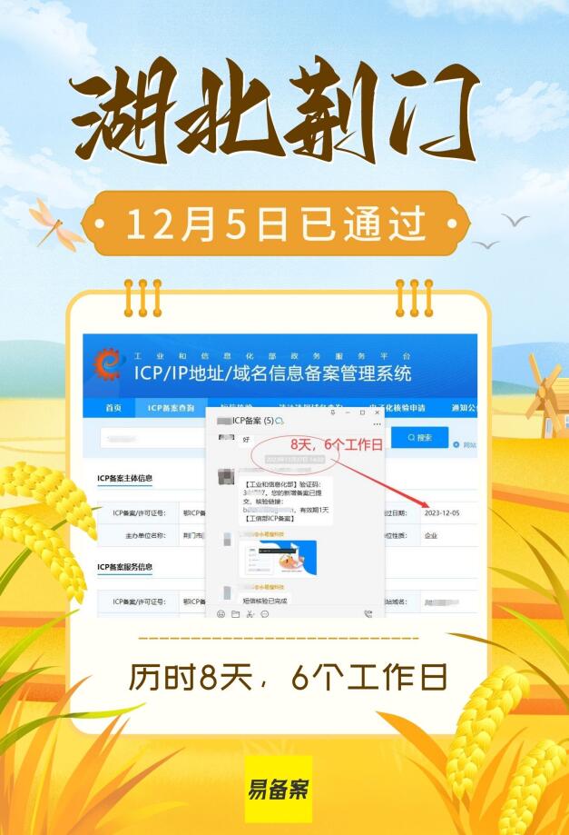 湖北荊門的一個客戶做ICP備案,用了6個工作日。前后是8天,但刨除一個雙休,就是6個工作日了。2023年12月5日已通過?;旧先珖藗€別省份和偶爾情況,7個工作日內(nèi)都可以備案通過。