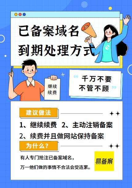 因為你無法關(guān)停網(wǎng)站。所以在域名過期之前還是建議趕緊注銷掉備案。如果需要幫助聯(lián)系易備案微信:yysicp吧!