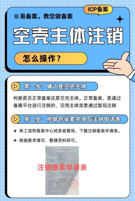 網(wǎng)站ICP備案中,牽涉到一項(xiàng)比較難的操作:空殼主體注銷,很多人不知道怎么辦理。如果你的主體(企業(yè)或個(gè)人)被變成空殼主體,那就會(huì)耽誤后邊的備案進(jìn)程,必須先注銷再申請(qǐng)新的ICP備案。