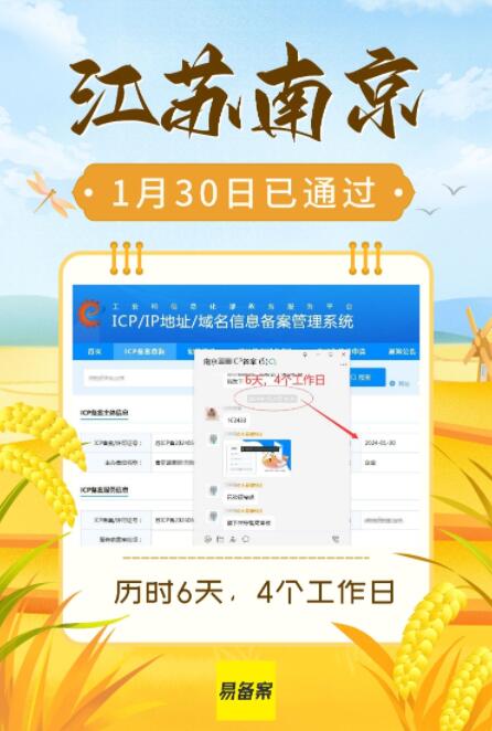 江蘇省ICP備案速度也提升了!南京只需要4個(gè)工作日。