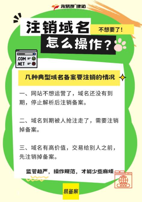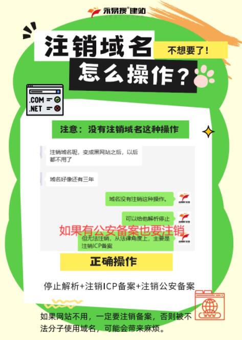 以上說的備案是指:ICP備案+公安備案,因為大部分網(wǎng)站都做的有ICP備案而沒有公安備案,所以這里就用備案兩個字來代指這些備案操作。如果您的域名不想用了,也可以找我們代為注銷備案。