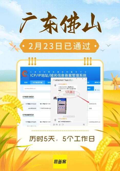 廣東省佛山市其實速度平時是很快的,因為牽涉到春節(jié),可能稍微慢了一下,用了5天。一般我們以前做的都是3個工作日就可以通過備案了,這個稍微久了一點。ICP備案各省都可能會出現(xiàn)一些時間上忽快忽慢的情況,但大多數(shù)省還是會相對穩(wěn)定的。