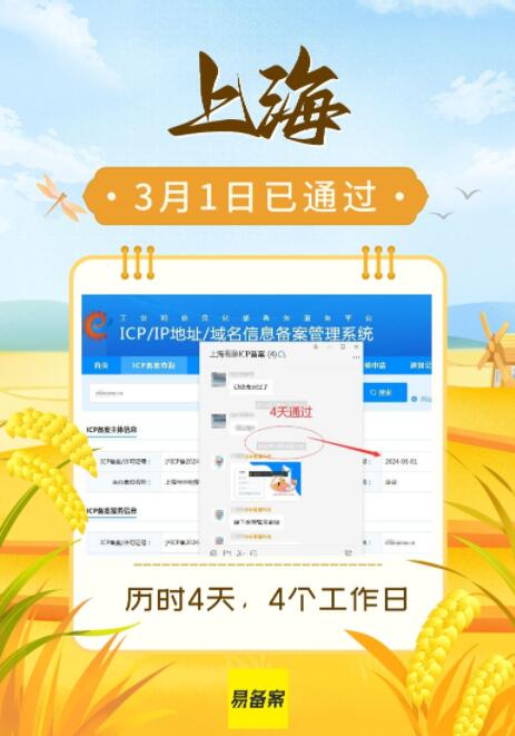 4個(gè)工作日上海的ICP備案管局審核就通過(guò)了。,如果算是域名實(shí)名認(rèn)證之后的等待時(shí)間,差不多一個(gè)星期左右ICP備案就能完全通過(guò)。