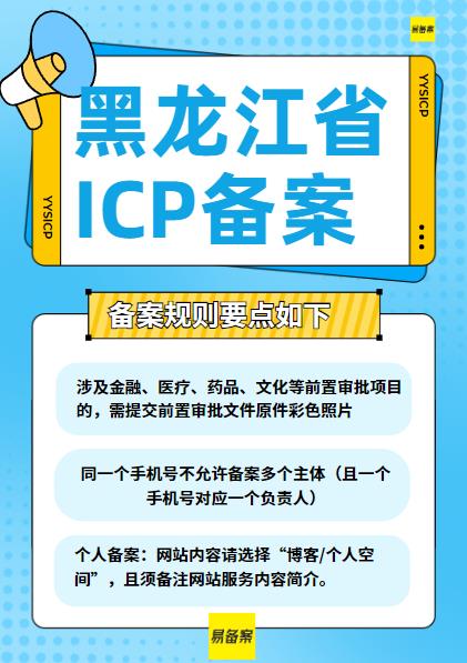 黑龍江省ICP備案規(guī)則和注意事項(xiàng)。黑龍江省主要的規(guī)則就是: