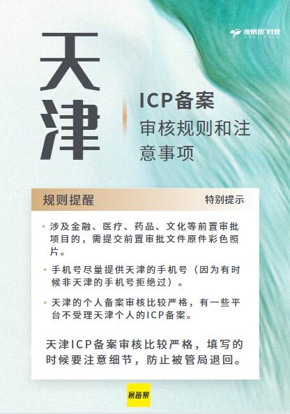 三、天津的個(gè)人備案審核比較嚴(yán)格,有一些平臺不受理天津個(gè)人的ICP備案。