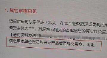 有的服務(wù)器上的碼被人用了之后,別人的那個備案查出來像是虛假備案,就會給整個服務(wù)器上的碼都打上標(biāo)記。用到這個碼的都提示讓購買云產(chǎn)品后再提交備案。實際上是說那個備案服務(wù)碼,不太對勁兒,需要換一個。