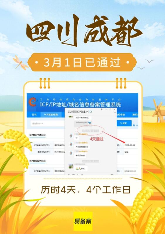 各個省份審核時間不同,一般是在7個工作日左右就可以審核通過了。(各個省份備案審核時間不同,審核標(biāo)準(zhǔn)也有差異)