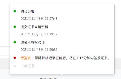 售后工程師也沒有辦法,讓在ssl證書功能里申請一個ssl證書,在云盾證書里使用。于是按照指引申請一個,說是1~15分鐘驗證通過。