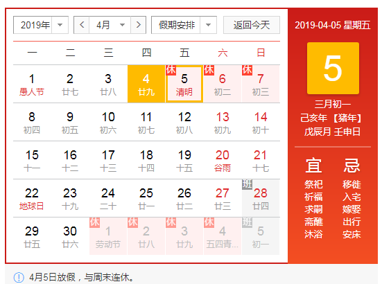 根據(jù)《國(guó)務(wù)院辦公廳關(guān)于2019年部分節(jié)假日安排的通知》精神,現(xiàn)將2019年清明節(jié)放假日期安排通知如下: