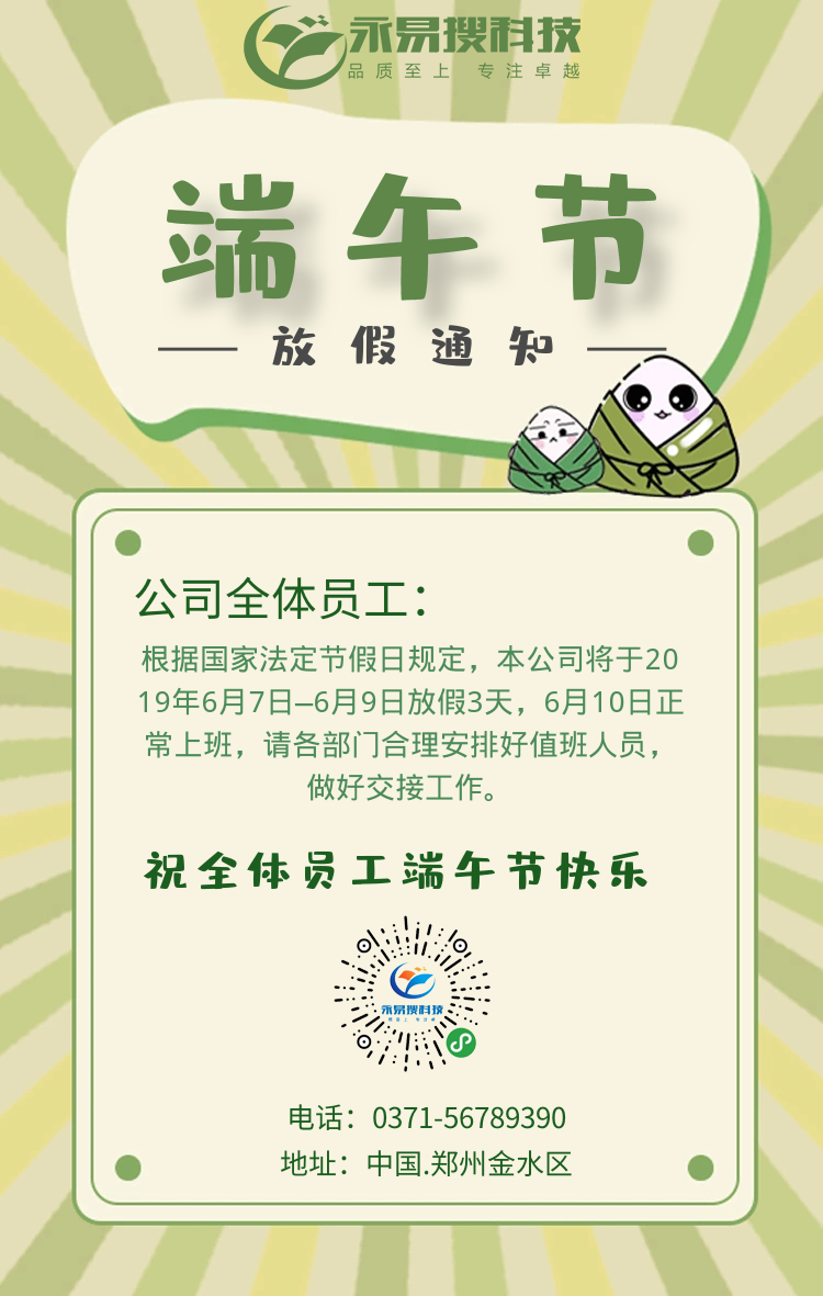 我公司擬于2019年6月7日~9日,放假3天,特此通知!