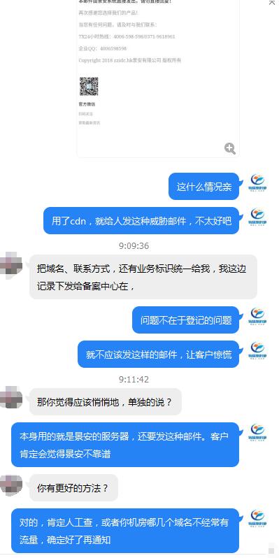 昨天開始,景安群發(fā)短信通知,并且客服回復(fù)說發(fā)短信的同時(shí)也發(fā)了郵件,所以如果您是永易搜的客戶,請把相關(guān)截圖發(fā)給我們的客服,將一并發(fā)送給景安進(jìn)行處理。