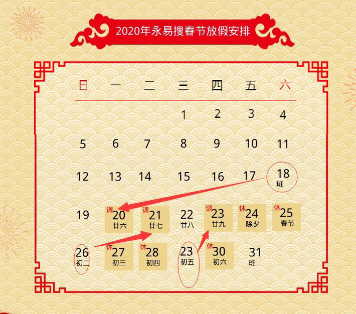 二、1月26日(正月初二)上班,調(diào)整到1月21(臘月二十七)休息。