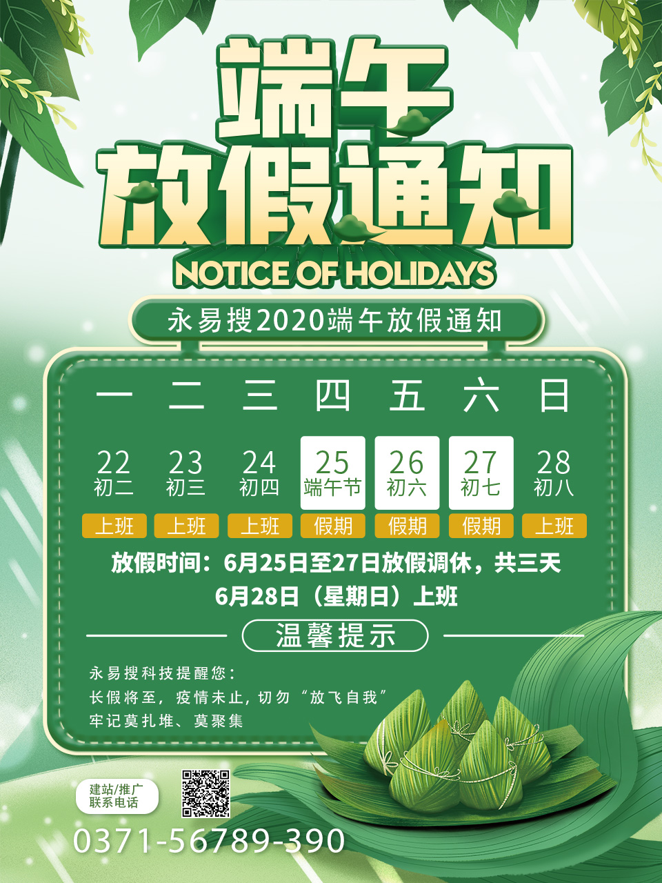我司定于2020年6月25日~27日,放假三天。放假期間如遇網(wǎng)站故障等問題可撥打緊急電話:13526646200(或者微信),其他問題請?jiān)诙宋绻?jié)過后咨詢!