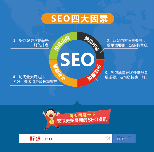 網(wǎng)站排名四大因素:建站、內(nèi)容、外鏈、用戶。