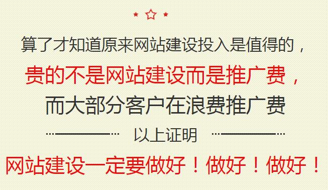 但,實際上,非常多的人在做推廣的時候是舍得花錢的,起碼懂行的人都是非常舍得花推廣費的,因為推廣環(huán)節(jié)離成交更近,而網(wǎng)站建設(shè)環(huán)節(jié)似乎不能直接導(dǎo)致成交,但不代表網(wǎng)站建設(shè)不重要。就像是房子裝修對用戶居住很重要一樣,但不能忽視房子的根基要做扎實。具體的計算過程,我們就不截圖了,因為很多計算看的頭發(fā)麻,但結(jié)論大家可以結(jié)合自己的實際情況想想,是不是這個道理。
