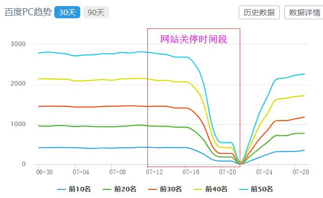 1、網(wǎng)站關(guān)停后不是一下子排名全無,而是緩慢的下降。