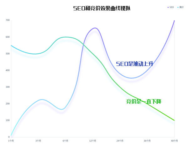 所以,整體來看,競(jìng)價(jià)等付費(fèi)廣告的特點(diǎn)是:短、平、快,適合短期內(nèi)投一下,不好就撤,好的話就一直做著,多下點(diǎn)功夫調(diào)整創(chuàng)意、調(diào)整出價(jià)。隨著時(shí)間推移,可能效果不好的時(shí)候就要想其他辦法了。而SEO的特點(diǎn)是:波動(dòng)上升,性價(jià)比高。做SEO就要未雨綢繆,做好鋪墊,一步一個(gè)一腳印把網(wǎng)站不斷地做提升,效果越來越好。