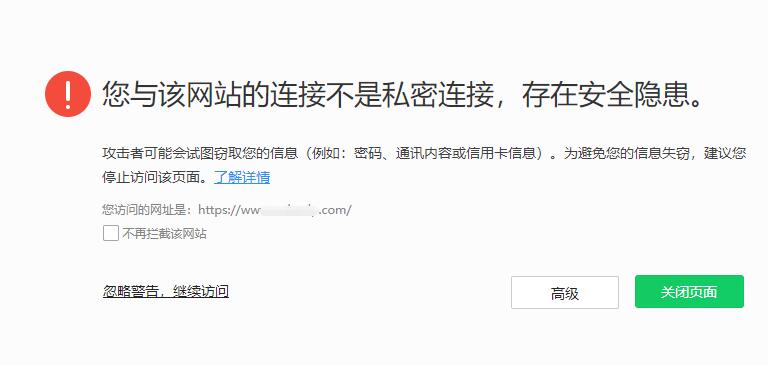 您與該網(wǎng)站的連接不是私密連接,存在安全隱患。