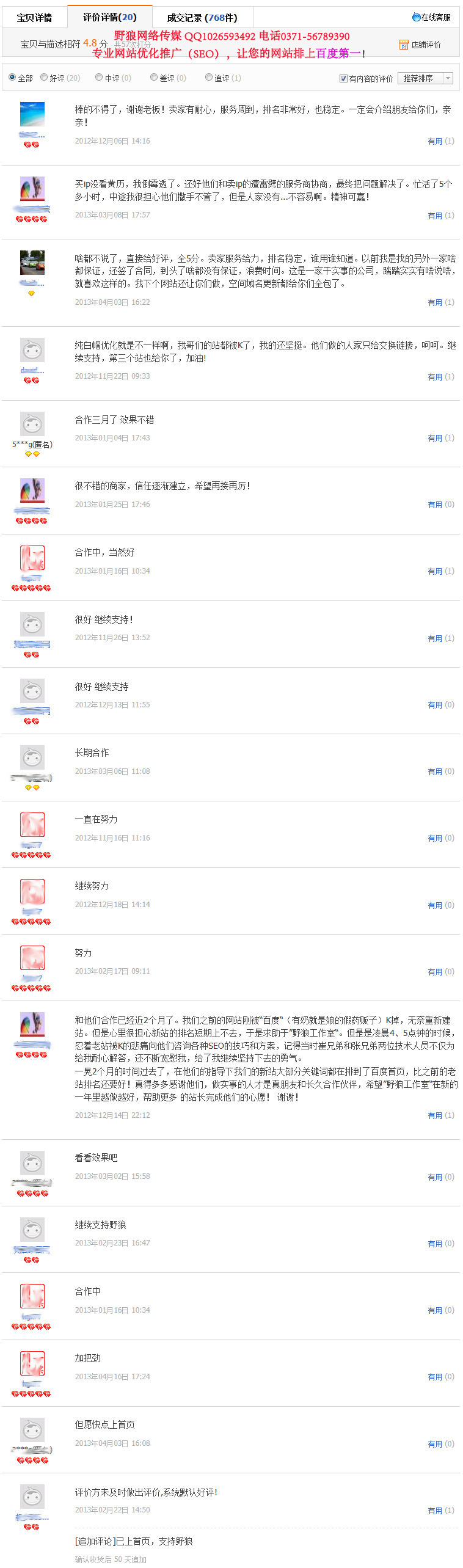一、野狼SEO團隊淘寶評價全部真實有效,不刷單,不刷評價