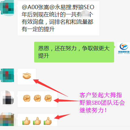 再次感謝所有支持我們的客戶,有的客戶十幾年如一日的支持我們,每年都提前主動續(xù)費,萬分感謝。野狼SEO團(tuán)隊會繼續(xù)努力,幫助更多的企業(yè)!