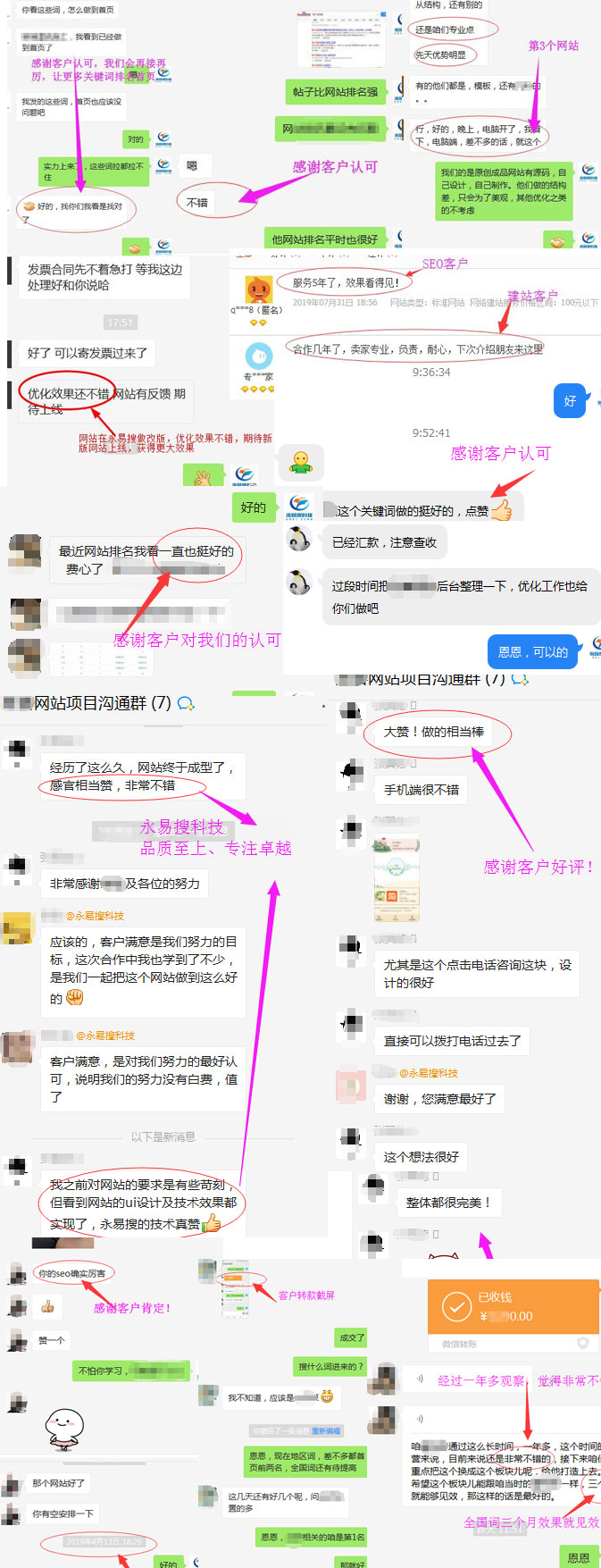 野狼SEO團隊、永易搜建站,都是以質量求生存,以信譽贏得客戶尊重。我們不過度營銷、不虛假夸張,用心服務好每一個客戶,所以三分之二以上的客戶都是老客戶介紹的,因為用了我們做的網站、我們提供的SEO服務之后覺得很好,愿意介紹給身邊的親戚朋友們!網絡公司開發(fā)一個新客戶并取得客戶信任不容易,但客戶找到一個好的負責人的服務商也不是一件容易的事情。